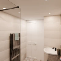 Click through the images to see the dream the designer presented to the client. Click on 360 to place yourself in the room.